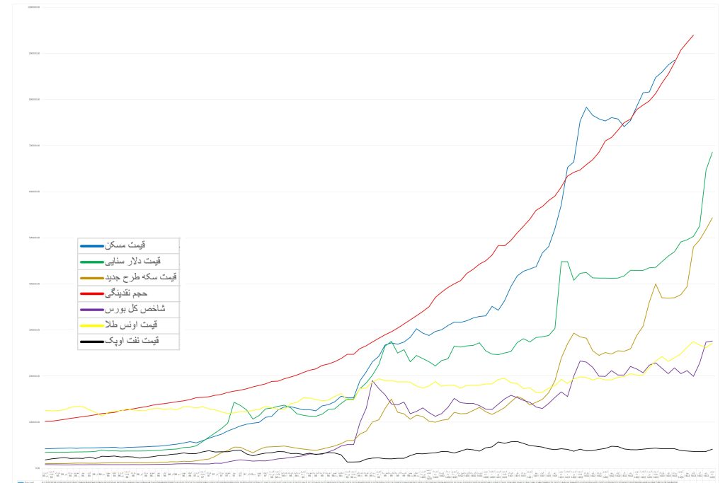 میزان ارتباط و اثرگذاری این بازارها و پارامترهای اقتصادی بر یکدیگر با ضریب همبستگی (Correlation Coefficient) سنجیده می‌شود. با بررسی داده‌های موجود که از بانک مرکزی و سازمان ملّی آمار استخراج گردیده، نتایج جدول زیر به دست آمده است.( جدول اطلاعات مرداد 1403 به قبل)